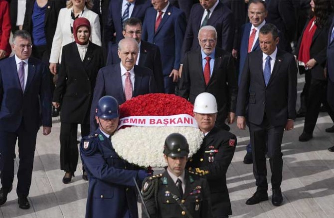 Kurtulmuş başkanlığındaki devlet erkanı da Anıtkabir’i ziyaret etti. Gece yarısı Irak’tan yurda dönüş yapan Cumhurbaşkanı Erdoğan, törende yer almadı. Erdoğan’ın yerine Cumhurbaşkanı Yardımcısı Cevdet Yılmaz hazır bulundu. CHP Genel Başkanı Özgür Özel ile birlikte siyasi parti temsilcileri ve milletvekilleri ile bazı bakanlar da törene iştirak etti. Daha sonra Birinci Meclis’te de tören düzenlendi.