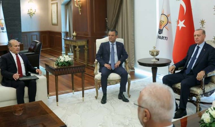 AKP'li Cumhurbaşkanı Recep Tayyip Erdoğan ile CHP Genel Başkanı Özgür Özel, AKP Genel Merkezi'nde bir araya geldi. Özel’i AKP Genel Başkan Vekili Mustafa Elitaş karşıladı. Özel’e ise CHP İstanbul Milletvekili Namık Tan eşlik etti. 16.07’de başlayan görüşme, 1 saat 35 dakika sürdü.