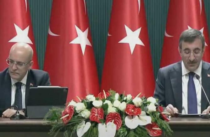 Cumhurbaşkanı Yardımcısı Cevdet Yılmaz ile Hazine ve Maliye Bakanı Mehmet Şimşek Kamuda Tasarruf ve Verimlilik Paketi’ni açıklıyor.