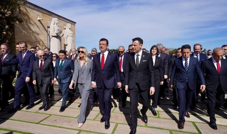 CHP Yüksek Disiplin Kurulu Başkanı Turan Taşkın Özer, CHP İstanbul İl Başkanı Özgür Çelik ve İmamoğlu'nun eşi Dilek Kaya İmamoğlu da Anıtkabir ziyaretine katıldı. Aslanlı Yol’dan Anıtkabir avlusuna giriş yapan yaklaşık 200 kişilik heyet, askeri törenle karşılandı.