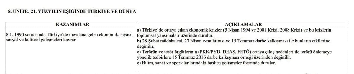20-21 Haziran 2026’da yapılacak YKS’de, İnkılap Tarihi ve Atatürkçülük dersinde ilk kez 15 Temmuz darbe girişimiyle ilgili soruların yer alabileceği belirtiliyor. Talim Terbiye Kurulu, 8. ünitedeki “21. Yüzyılın Eşiğinde Türkiye ve Dünya” başlığına,