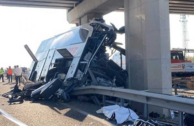 Alınan bilgiye göre, İzmir’den Ağrı’ya gitmek üzere yola çıkan ve sürücüsünün kimliği henüz belirlenemeyen Öz Ağrı Seç Turizm firmasına ait 04 AAV 951 plakalı Mercedes marka yolcu otobüsü, sabaha karşı Olukpınar köyü yakınlarında yoldan çıkarak köprü ayaklarına çarptı. İhbar üzerine olay yerine gelen itfaiye ekipleri otobüste sıkışanları kurtardı. Yaralılar, ambulanslarla çevredeki hastanelere sevk edildi. Söz konusu kazada otobüs şoförünün uyuduğu belirtildi.