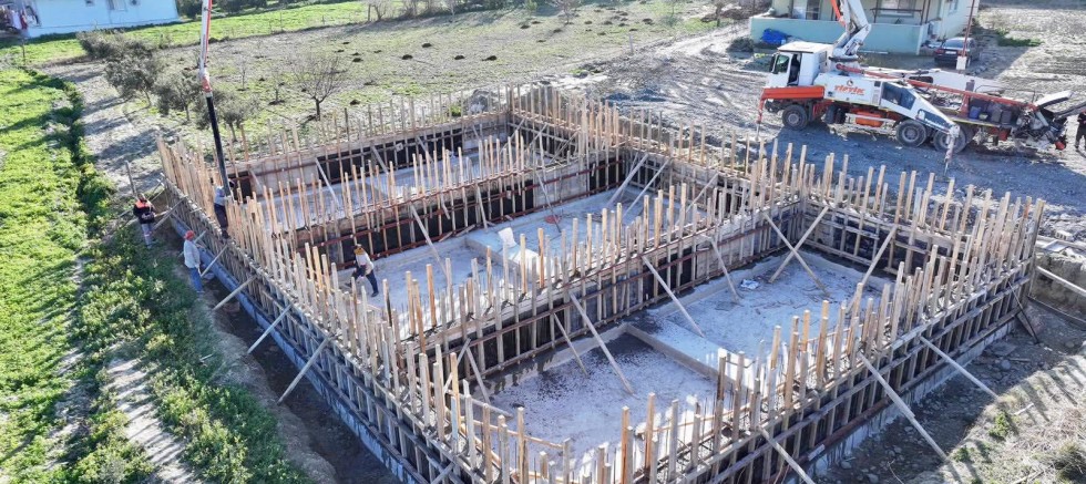 Arsuz ilçesine bağlı Üçgüllük mahallesinde yapımı devam eden çok amaçşı salonun inşaatı hızla devam ediyor.