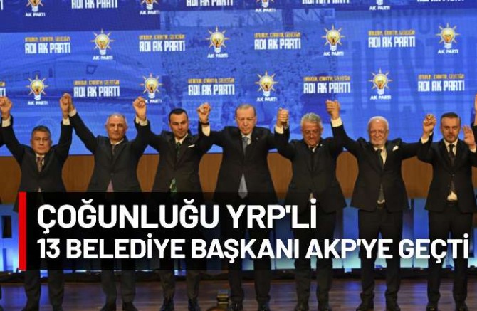 AKP’nin 23. yıl etkinliğinde çoğunluğu Yeniden Refah Partili isimlerden oluşan 13 belediye başkanı AKP’ye katıldı.